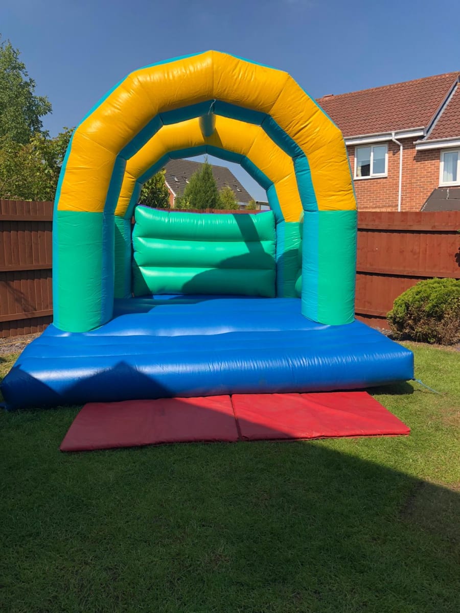 Featuring a delightful combination of blue, green, and yellow colors, our bouncy castle is not only visually appealing but also offers a safe and enjoyable bouncing experience. Kids and adults alike will love jumping and playing on this inflatable attraction, creating unforgettable memories and moments of joy.